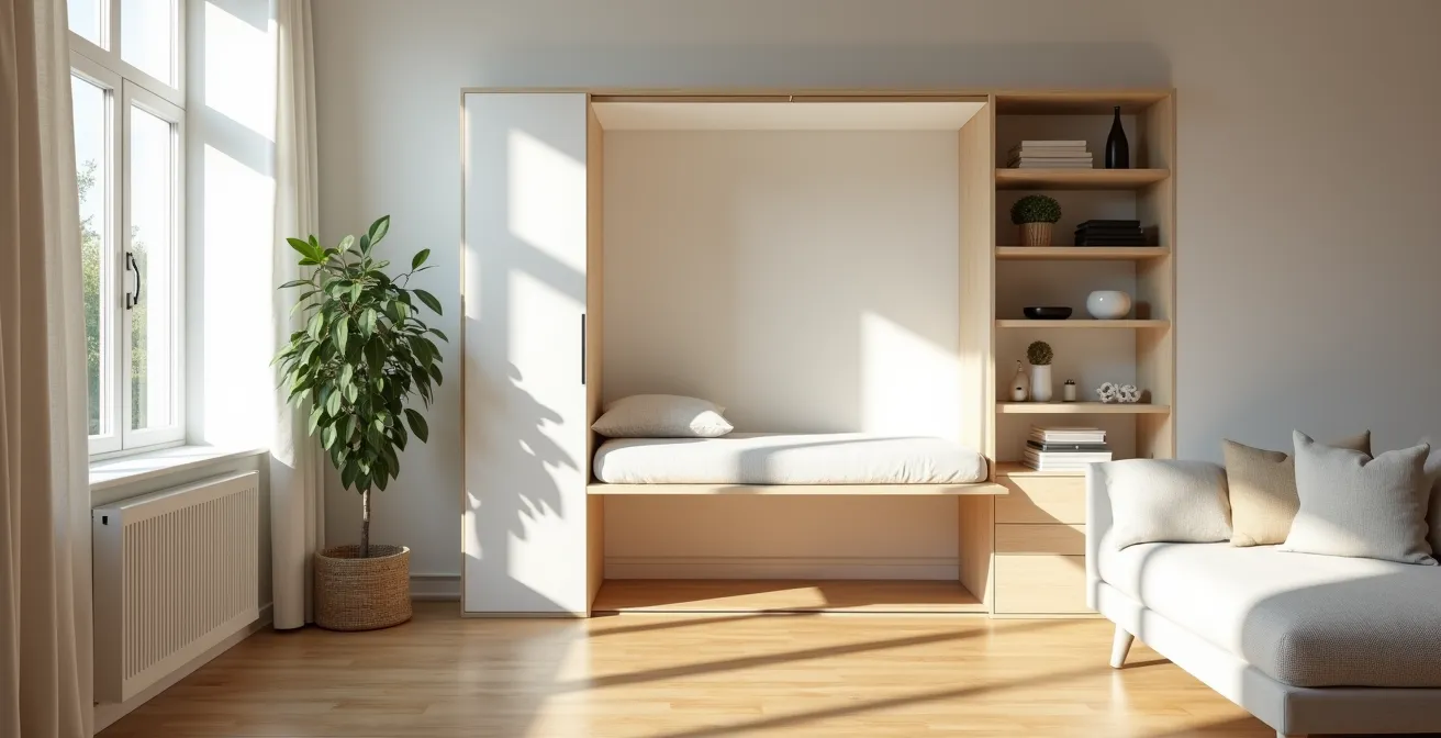 This guide moves beyond the catalog of convertible furniture. We will deconstruct the architectural principles that make these spaces work, exploring how to manage sightlines, select the right transformative pieces for sleep quality, avoid critical storage mistakes, and master the “transformative rituals” that shift a room’s energy from productivity to hospitality. We will even analyze the hidden costs of inefficient space and draw lessons from extreme organizational challenges to prepare you for any scenario.